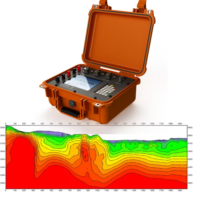 Este instrumento es capaz de adquirir datos en diferentes espesores de bobinas (10, 20 y 40 metros), lo que permite investigar profundidades de hasta 60 metros.